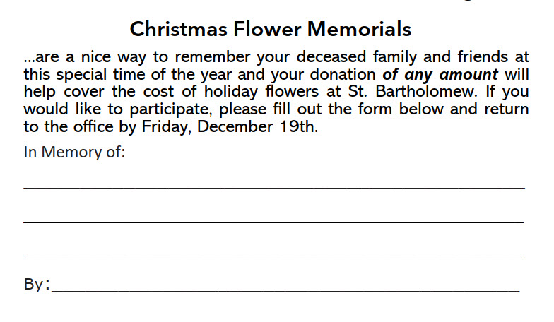 Regular Offerings to the Church of St. Bartholomew: Thank you to everyone who is continuing their Church offerings to help our Church meet everyday expenses. If you choose to do so, please mail to St. Bartholomew Church, 30 Pleasant St., Norwich, NY 13815. Father receives all mail and distributes it to the Churches. If you would like to consider an automatic bank payment plan for the regular support to our Church (either through your checking or savings account), please contact the office by phone or email (stbartsnorwichny@frontier.com) to get more information. Your may select deductions from your account on a weekly, biweekly, monthly or quarterly basis. An authorization form needs to be completed and can be changed any time. This option saves time and is a convenient way to give regularly.